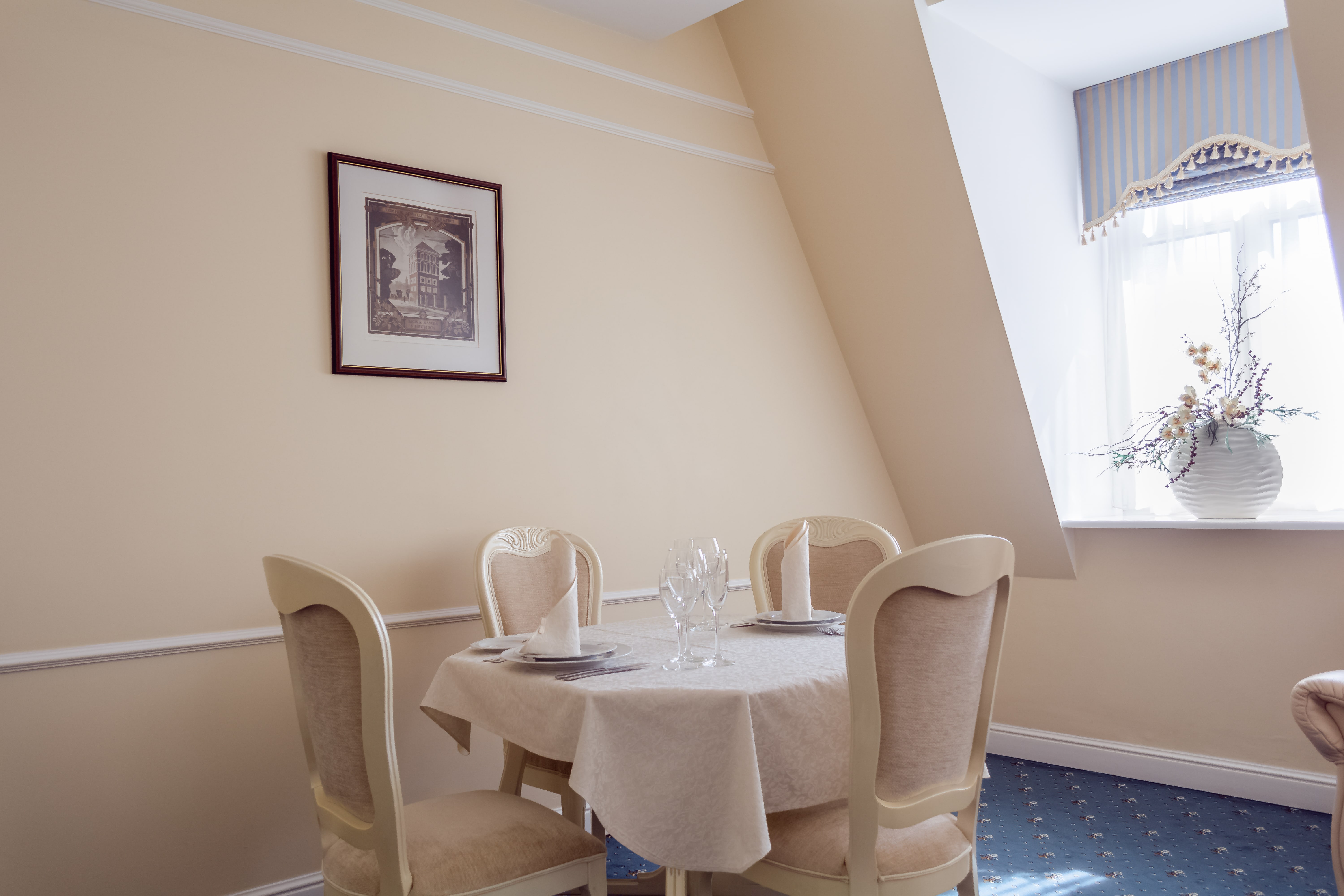 A cozy two-room home-type room with a small kitchen is located on the top floor of the hotel. Single and double occupancy is possible.